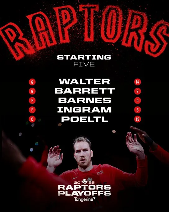 赛前,猛龙更新官方社媒,公布了今日比赛的首发阵容。